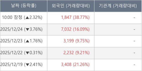 [표] 외국인ㆍ기관 순매매량 (단위 주)