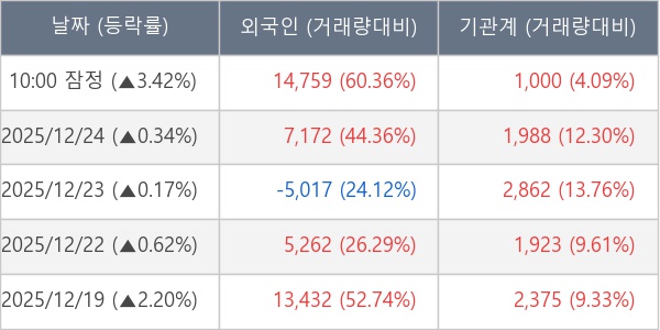 ※ 사모펀드 등 일부 기관의 순매매량은 표시되지 않음