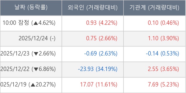 [표] 외국인ㆍ기관 순매매량 (단위 만주)