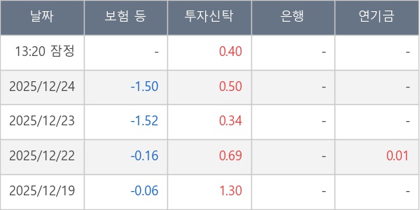 ※ 사모펀드 등 일부 기관의 순매매량은 표시되지 않음