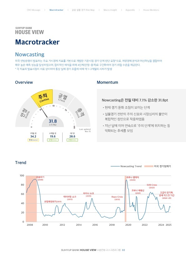 이 리포트는 매월 발행될 예정이며, 금융시장과 실물경제의 핵심 리스크 요인을 종합 분석하여 향후 경제 흐름을 전망하는 Sh수협은행 리스크관리그룹의 공식 보고서다.