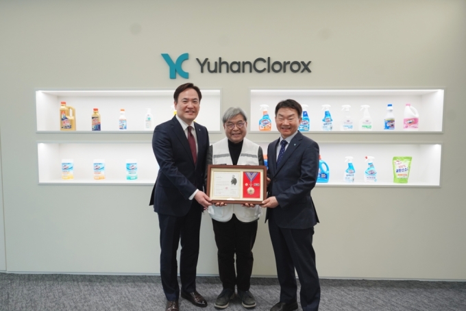[서울=뉴스핌] 김신영 기자 = 유한클로락스가 지속적인 지역사회 기여와 취약계층 지원 공로를 인정받아 대한적십자사로부터 회원유공장 '최고명예장'을 수상했다고 26일 밝혔다. 전달식은 유한클로락스에서 진행됐으며, 박종현·김광호 대표와 대한적십자사 경기도지사 이재정 회장이 참석했다.