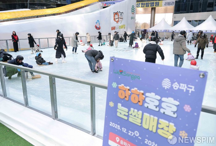 [서울=뉴스핌] 윤창빈 기자 = 27일 서울 송파구 가든파이브 중앙광장에 마련된 2025 하하호호 눈썰매장에서 아이들이 얼음 썰매를 즐기고 있다. 2025.12.27 pangbin@newspim.com