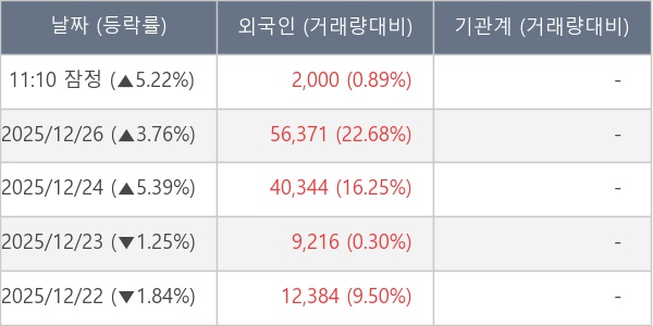 [장중수급포착] 디에이치엑스컴퍼니, 외국인 7일 연속 순매수행진... 주가 +5.22%