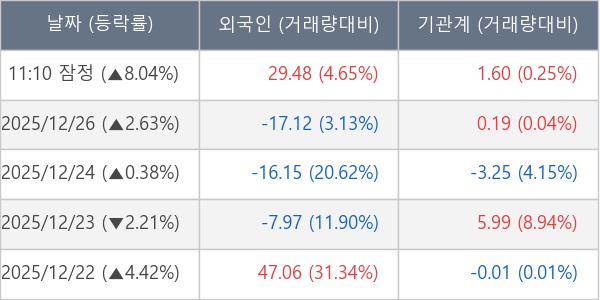 ※ 사모펀드 등 일부 기관의 순매매량은 표시되지 않음