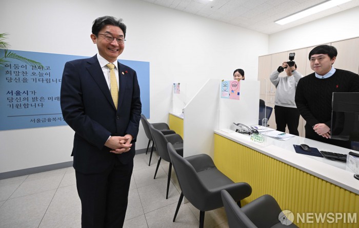 [서울=뉴스핌] 양윤모 기자 = 이억원 금융위원장이 29일 오전 서울 동작구 서울금융복지상담센터 동작센터에서 개최된 불법사금융 근절 현장 간담회에 참석에 앞서 현장 관계자의 설명을 경청하고 있다. 2025.12.29 yym58@newspim.com