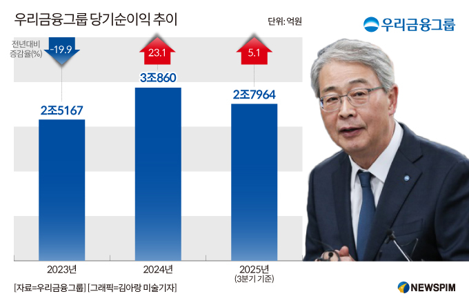 2023년 3월 취임한 임 회장은 당해 2조5167억원에 그친 그룹 당기순이익을 1년만인 지난 2024년에넌 3조860억원(+23.1%)까지 끌어올리며 실적 개선에 성공했다. 올해 3분기 누적 순이익도 전년동기 대비 5.1% 늘어난 2조7964억원을 달성했다.