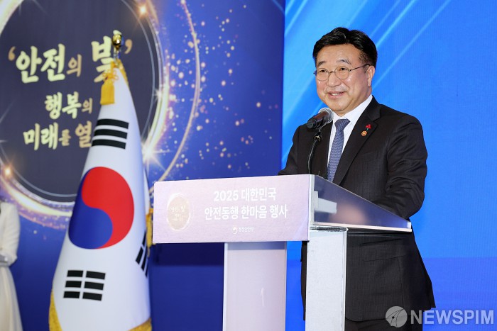 [서울=뉴스핌] 윤호중 행정안전부 장관이 29일 오전 세종컨벤션센터에서 국민 안전을 위해 헌신한 공직자와 안전실천의인 등과 함께 열린 '2025 대한민국 안전동행 한마음' 행사에서 인사말을 하고 있다. [사진=행정안전부] 2025.12.29 photo@newspim.com
