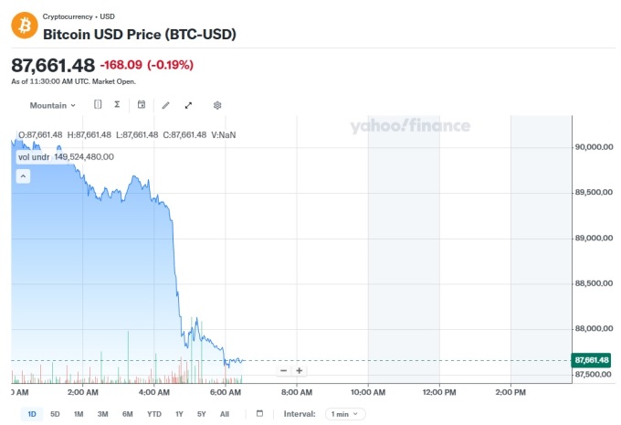 [서울=뉴스핌] 고인원 기자= 비트코인 가격이 29일 한때 9만 달러선을 회복했으나, 이후 상승분을 반납하며 다시 8만7000달러대 초반으로 밀렸다.