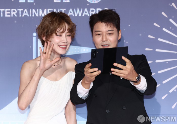 [서울=뉴스핌] 최지환 기자 = 29일 오후 서울 마포구 MBC 미디어센터에서 열린 2025 MBC 방송연예대상 시상식 포토월에서 MC를 맡은 장도연, 전현무가 포즈를 취하고 있다. 2025.12.29 choipix16@newspim.co