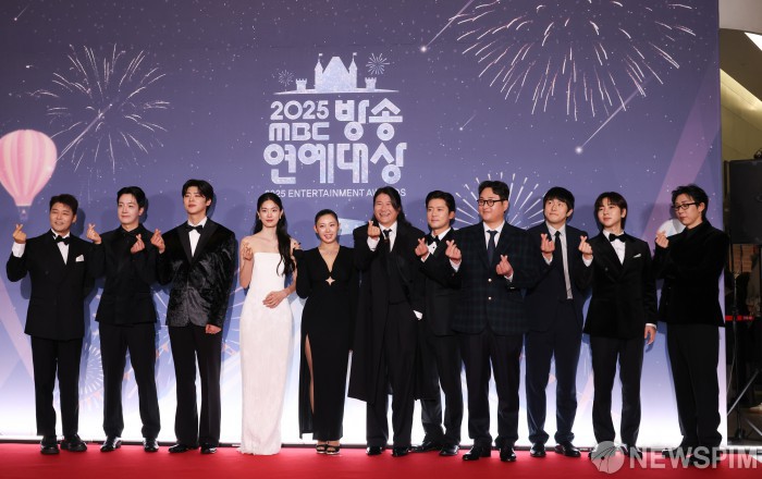 [서울=뉴스핌] 최지환 기자 = 전현무를 비롯한 '나 혼자 산다' 출연진들이 29일 오후 서울 마포구 MBC 미디어센터에서 열린 2025 MBC 방송연예대상 시상식 포토월에서 포즈를 취하고 있다. 2025.12.29 choipix16@newspim.com