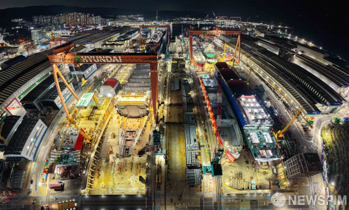 [서울=뉴스핌] 윤창빈 기자 = 어느덧 2025년의 해가 저물고 있습니다. 지난해 18일 울산 HD현대중공업 조선소의 밤은 어둠이 무색할 만큼 밝은 불빛으로 가득합니다. 붉은 말의 해인 2026년 병오년에는 한미 양국 조선산업 협력 프로젝트인 '마스가'(MASGA·미국 조선업을 다시 위대하게)가 본격화될 것으로 보입니다. 닻을 올린 마스가 프로젝트를 통해 '조선 강국'이라는 위상을 더욱 공고히 하고, 대한민국이 경제 대국으로 한 단계 더 도약하는 한 해가 되기를 기대해 봅니다. 2026.01.01 pangbin@newspim.com
