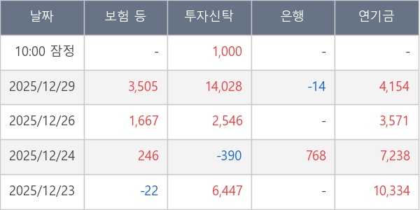 [표] 주요 기관별 순매매량 (단위 주)