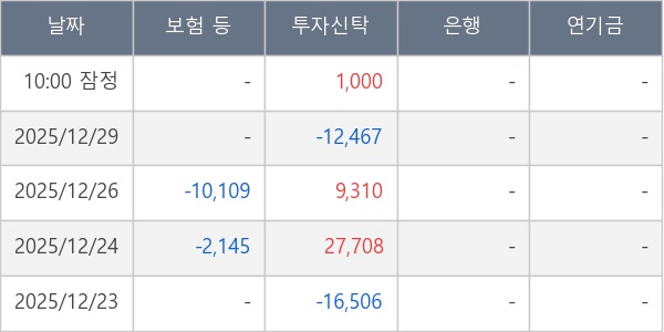 [표] 주요 기관별 순매매량 (단위 주)