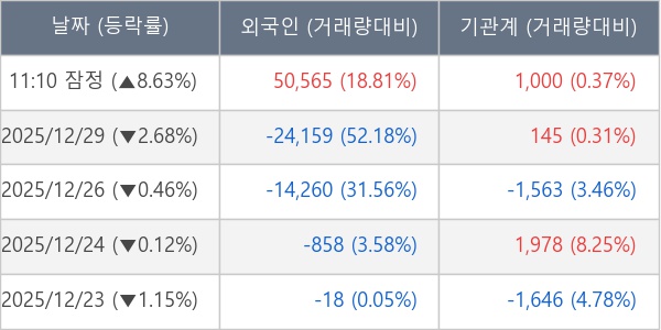 ※ 사모펀드 등 일부 기관의 순매매량은 표시되지 않음
