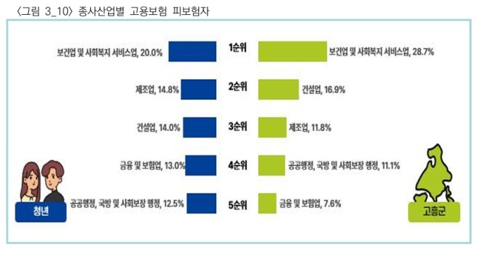 2024년 하반기 기준 청년 고용률은 81%로 집계됐고 주요 종사 산업은 보건·사회복지서비스업(20%)이 가장 많았다. 이어 제조업(14.8%), 건설업(14%) 순으로 분석됐다.