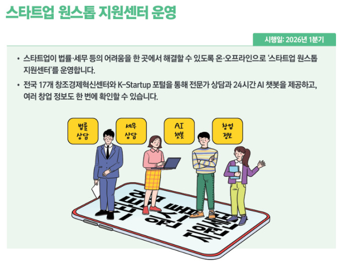 그동안 창업자는 부처·기관별로 흩어진 법률 자문과 세무 상담, 정부 지원사업, 창업 공간, 투자 정보 등을 각각 찾아다녀야 하는 상황이었다. 하지만 내년부터는 해당 정보를 하나의 창구에서 통합적으로 안내받을 수 있게 된다.