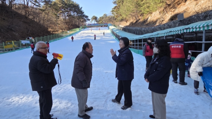이날 김 부군수는 관계부서 직원들과 눈썰매장의 무빙워크 작동 상태와 비상 정지 장치 등을 살피고 방문객이 추위를 피할 수 있는 휴게실 난방시설과 소방시설 등을 점검했다.