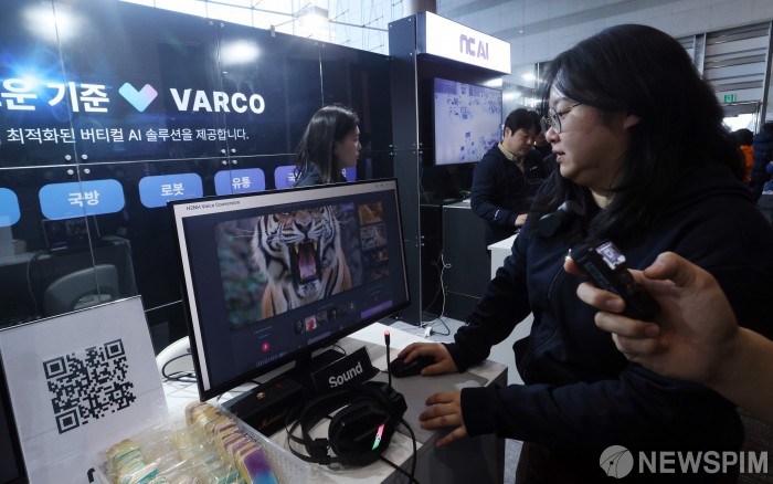 [서울=뉴스핌] 최지환 기자 = 30일 오후 서울 강남구 코엑스에서 열린 '독자 AI 파운데이션 모델' 프로젝트 1차 발표회 부스에서 NC AI 관계자가 시연을 하고 있다. 2025.12.30 choipix16@newspim.com
