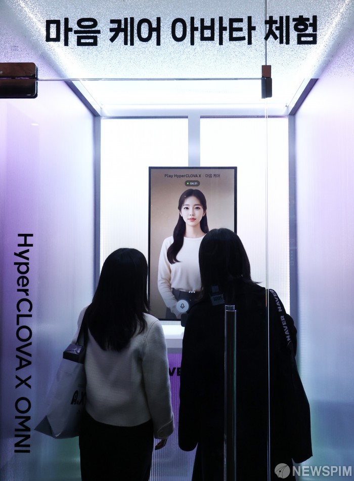 [서울=뉴스핌] 최지환 기자 = 30일 오후 서울 강남구 코엑스에서 열린 '독자 AI 파운데이션 모델' 프로젝트 1차 발표회 부스에서 네이버클라우드 관계자가 시연을 하고 있다. 2025.12.30 choipix16@newspim.com