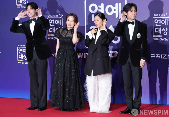 [서울=뉴스핌] 윤창빈 기자 = 예능 우리들의 발라드 MC(왼쪽부터 대니 구, 박경림, 미미, 정승환)가 30일 서울 마포구 SBS프리즘타워에서 열린 2025 SBS 연예대상 포토월에서 포즈를 취하고 있다. 2025.12.30 pangbin@newspim.com