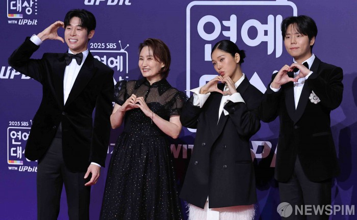 [서울=뉴스핌] 윤창빈 기자 = 예능 우리들의 발라드 MC(왼쪽부터 대니 구, 박경림, 미미, 정승환)가 30일 서울 마포구 SBS프리즘타워에서 열린 2025 SBS 연예대상 포토월에서 포즈를 취하고 있다. 2025.12.30 pangbin@newspim.com