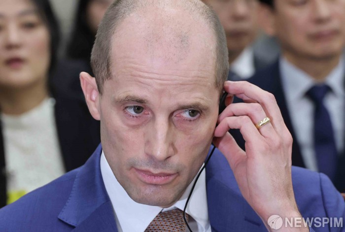 [서울=뉴스핌] 윤창빈 기자 = 해롤드 로저스 쿠팡 임시대표가 31일 서울 여의도 국회 과학기술정보방송통신위원회 전체회의에서 열린 쿠팡 침해사고 및 개인정보 유출, 불공정 거래, 노동환경 실태 파악과 재발방지 대책 마련을 위한 청문회에서 동시통역기를 착용하고 있다. 2025.12.31 pangbin@newspim.com