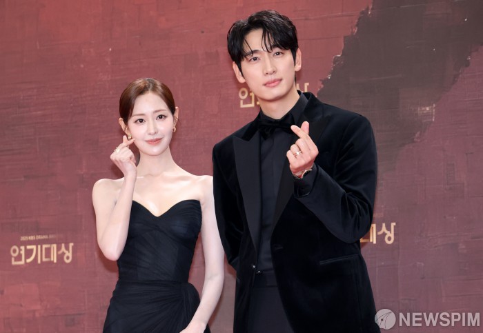 [서울=뉴스핌] 정일구 기자 = 배우 신슬기, 윤박이 31일 오후 서울 영등포구 KBS 웨딩홀에서 열린 2025 KBS 연기대상 레드카펫에서 포즈를 취하고 있다. 2025.12.31 mironj19@newspim.com