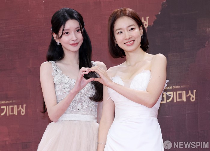 [서울=뉴스핌] 정일구 기자 = 배우 이효나, 이시아가 31일 오후 서울 영등포구 KBS 웨딩홀에서 열린 2025 KBS 연기대상 레드카펫에서 포즈를 취하고 있다. 2025.12.31 mironj19@newspim.com