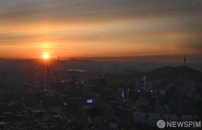 [서울=뉴스핌] 양윤모 기자 = 2026년 ‘붉은 말의 해’ 병오년(丙午年) 첫날인 1일 서울 시내로 첫 해가 떠오르고 있다. 2026.01.01 yym58@newspim.com