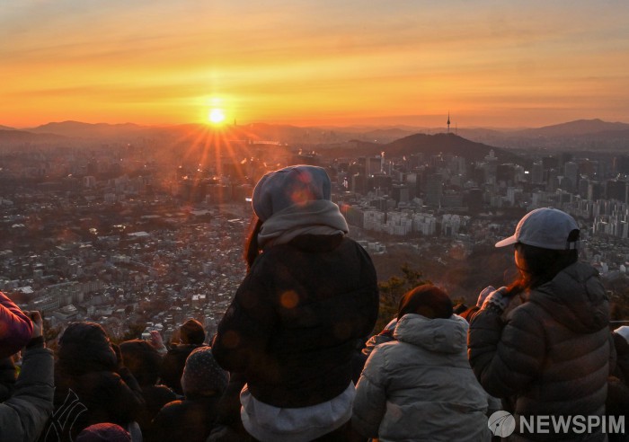 [서울=뉴스핌] 양윤모 기자 = 2026년 '붉은 말의 해' 병오년(丙午年) 첫날인 1일 서울 종로구 인왕산 정상에서 시민들이 일출을 지켜보고 있다. 2026.01.01 yym58@newspim.com
