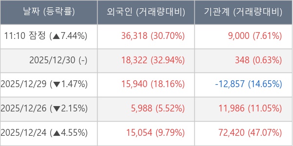※ 사모펀드 등 일부 기관의 순매매량은 표시되지 않음