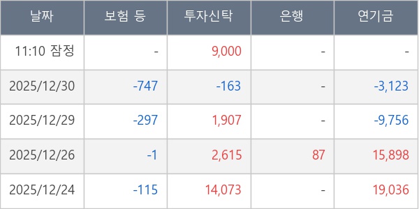 [표] 주요 기관별 순매매량 (단위 주)