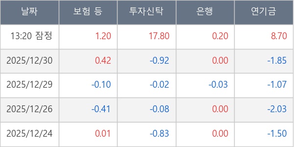 [표] 주요 기관별 순매매량 (단위 만주)