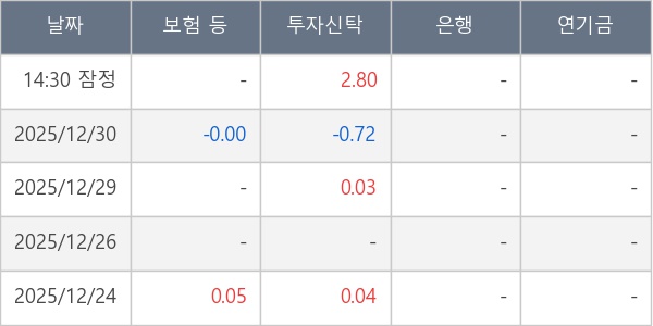 [표] 주요 기관별 순매매량 (단위 만주)
