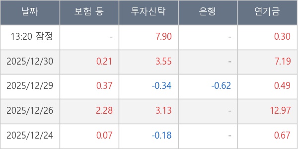 [표] 주요 기관별 순매매량 (단위 만주)