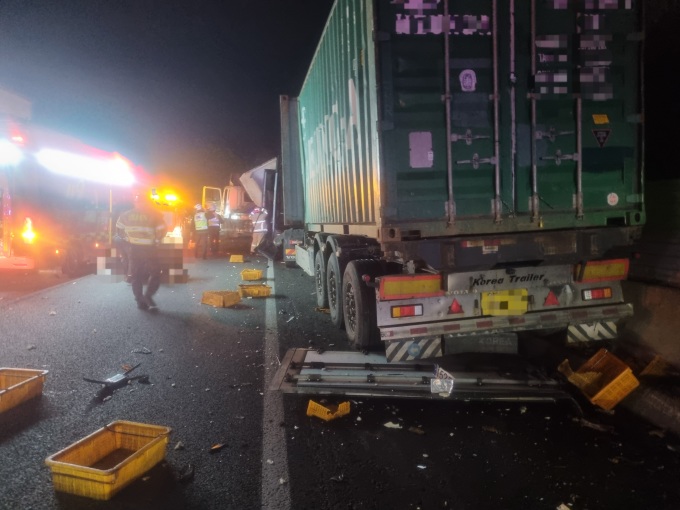 4일 오후 9시께 함안IC 인근 순천방향 구간에서 주행 중이던 A(40대)가 몰던 트레일러가 갓길과 4차로에 걸쳐 정차해 있던 카고트럭을 들이받았다.