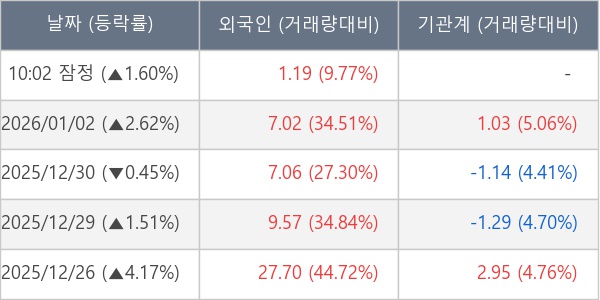 [장중수급포착] 미코, 외국인 5일 연속 순매수행진... 주가 +1.60%