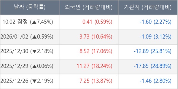 [장중수급포착] 우진, 외국인 6일 연속 순매수행진... 주가 +7.45%
