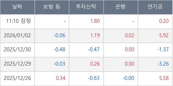 [표] 주요 기관별 순매매량 (단위 만주)