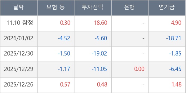 ※ 사모펀드 등 일부 기관의 순매매량은 표시되지 않음