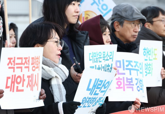 [서울=뉴스핌] 최지환 기자 = 이지현 참여연대 사무처장이 5일 오전 서울 종로구 광화문광장에서 열린 참여연대 2026 신년 기자회견에서 발언하고 있다. 2026.01.05 choipix16@newspim.com