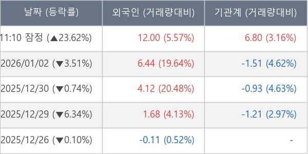 ※ 사모펀드 등 일부 기관의 순매매량은 표시되지 않음