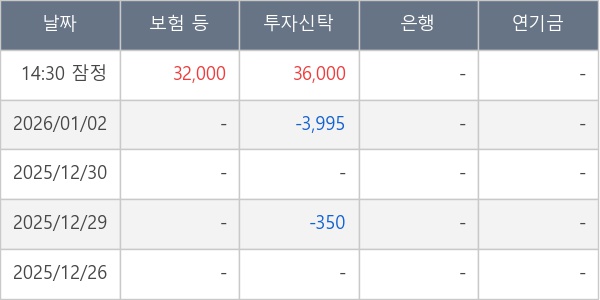 [표] 주요 기관별 순매매량 (단위 만주)