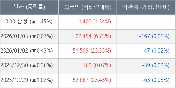 [표] 외국인ㆍ기관 순매매량 (단위 주)