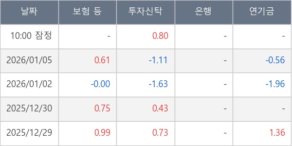 [표] 주요 기관별 순매매량 (단위 만주)
