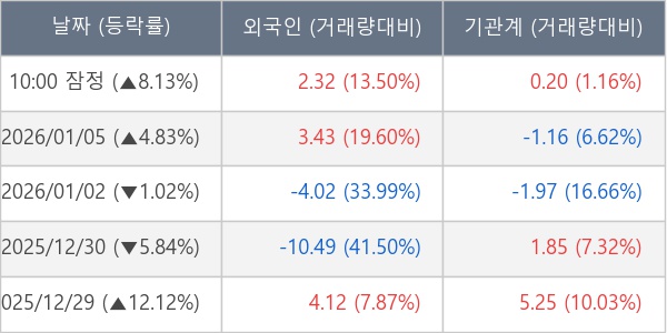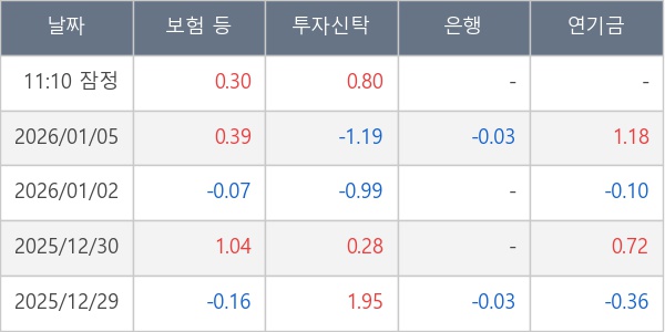 [표] 주요 기관별 순매매량 (단위 만주)