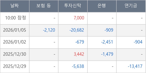 ※ 사모펀드 등 일부 기관의 순매매량은 표시되지 않음
