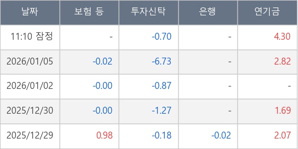 [표] 주요 기관별 순매매량 (단위 만주)