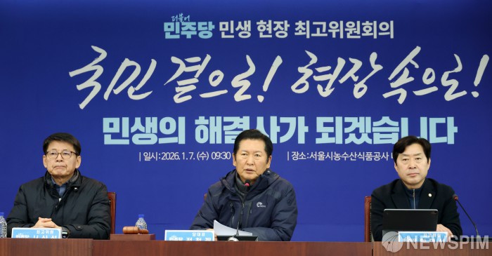 [서울=뉴스핌] 정일구 기자 = 정청래 더불어민주당 대표가 7일 오전 서울 송파구 서울시농수산식품공사에서 열린 민생 현장 최고위원회의에서 모두발언을 하고 있다. 2026.01.07 mironj19@newspim.com